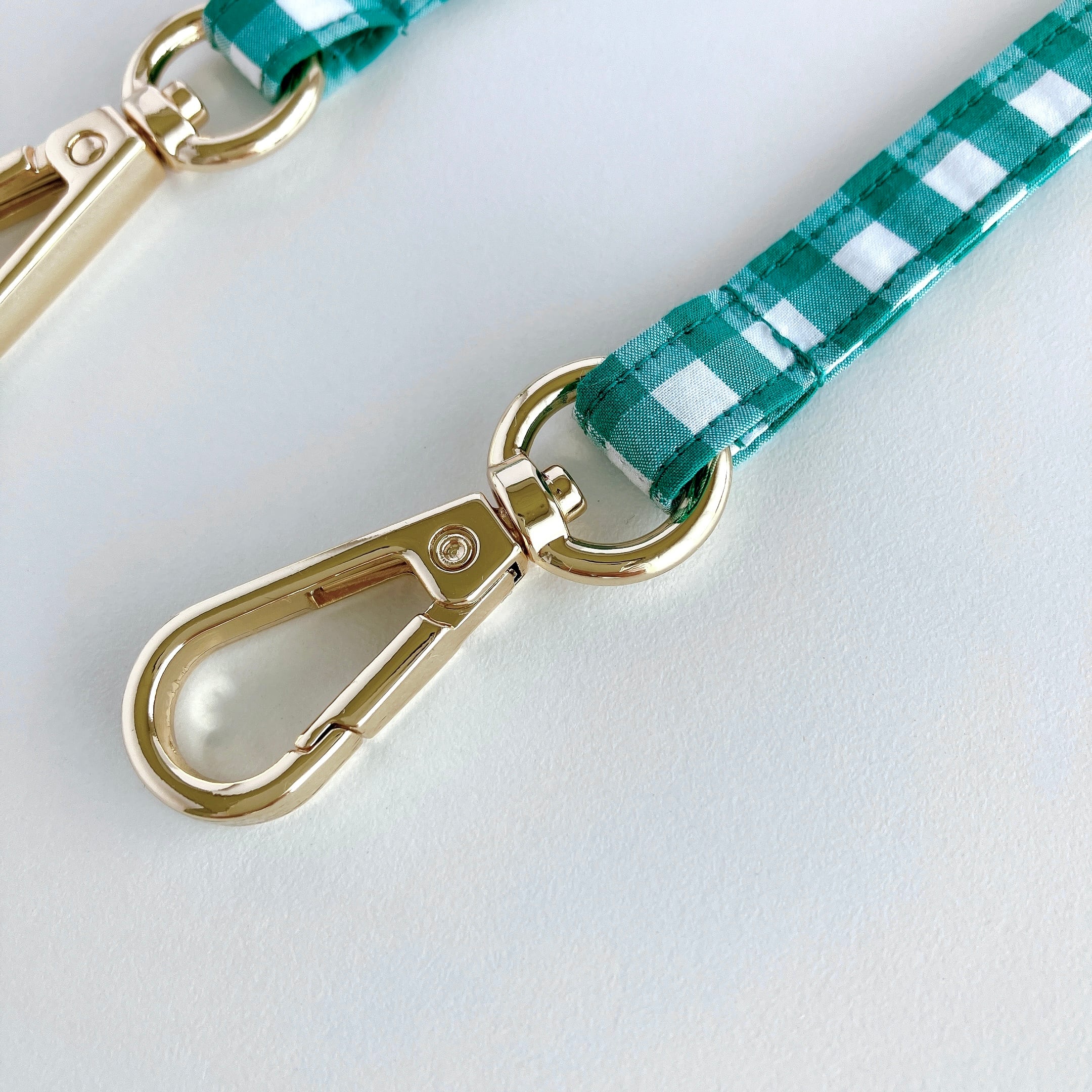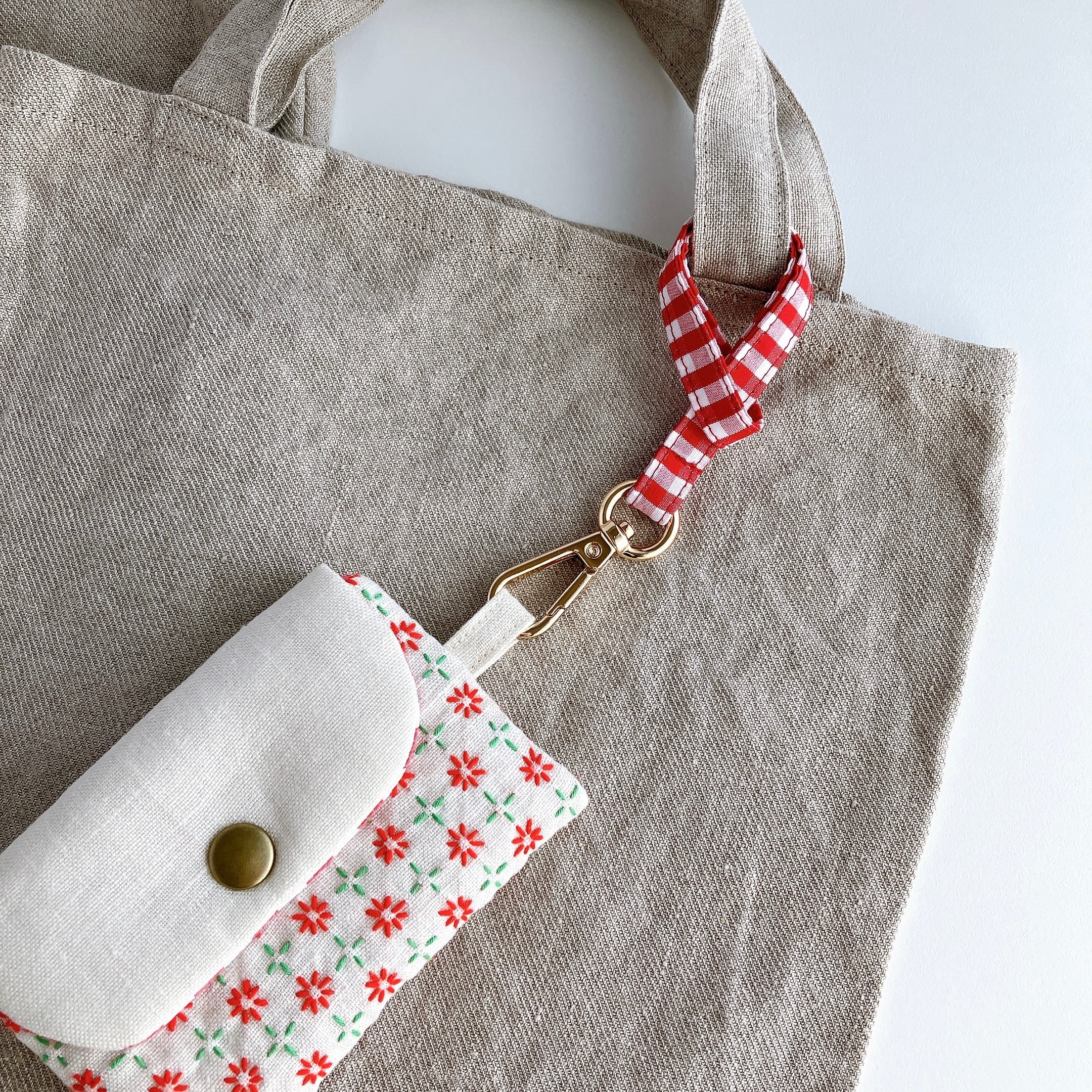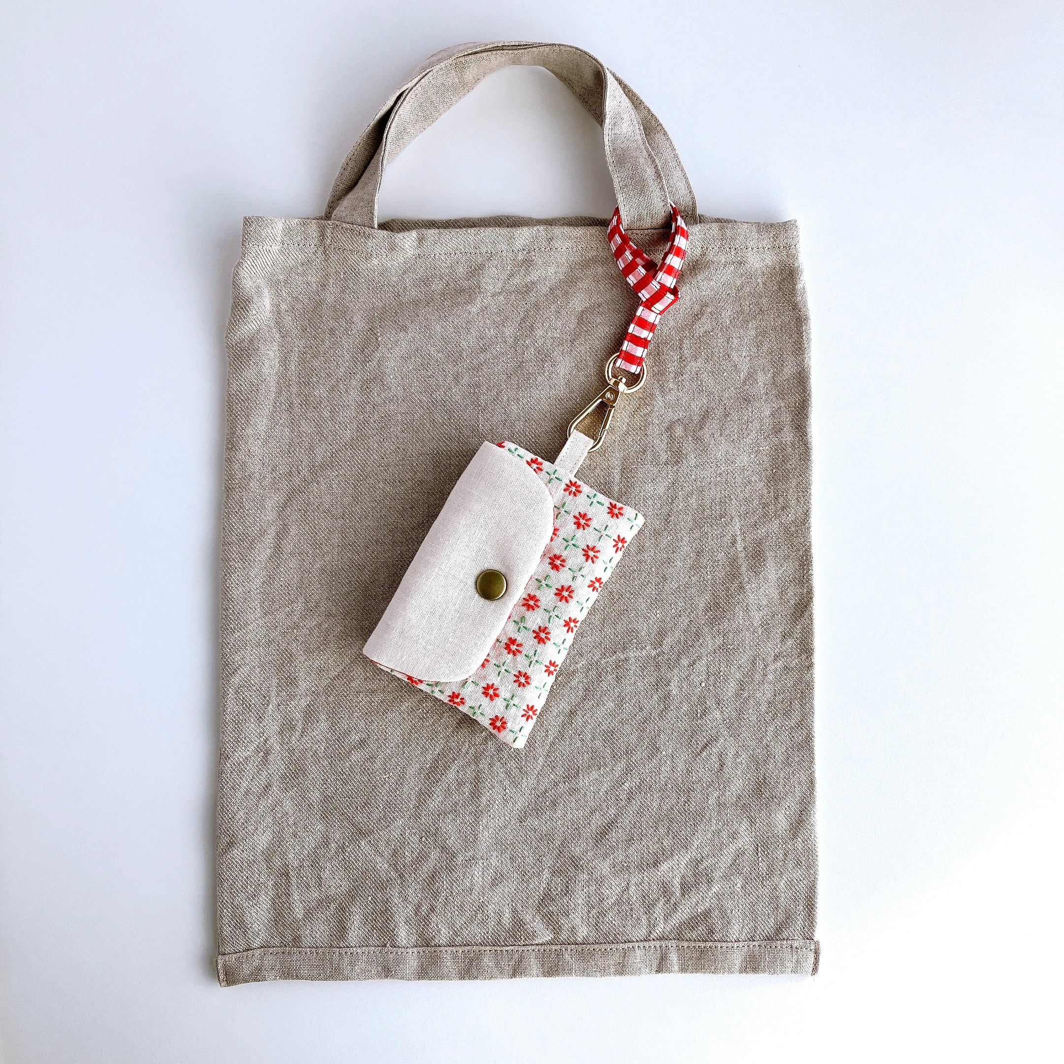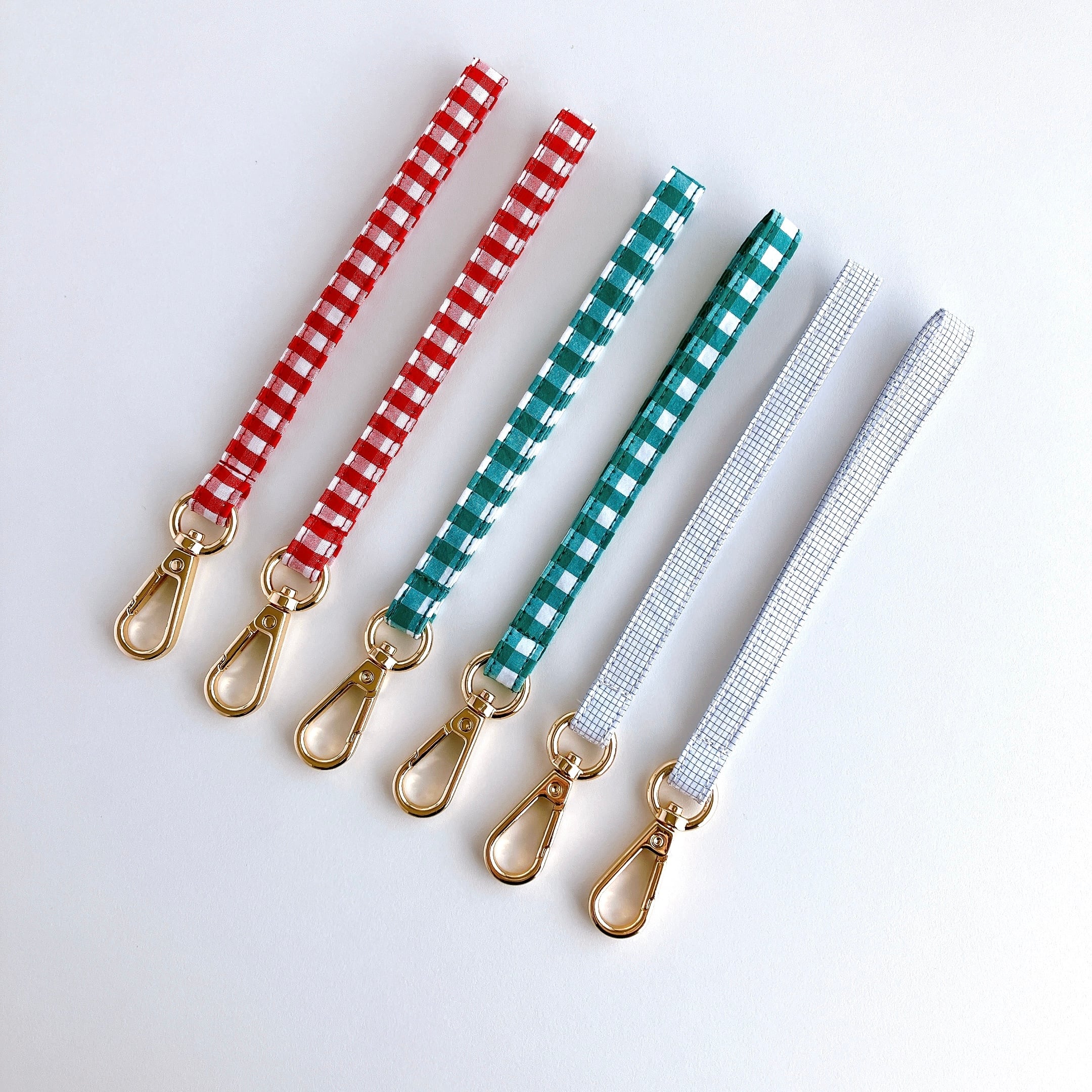 チェック模様の布を使って制作したストラップです。