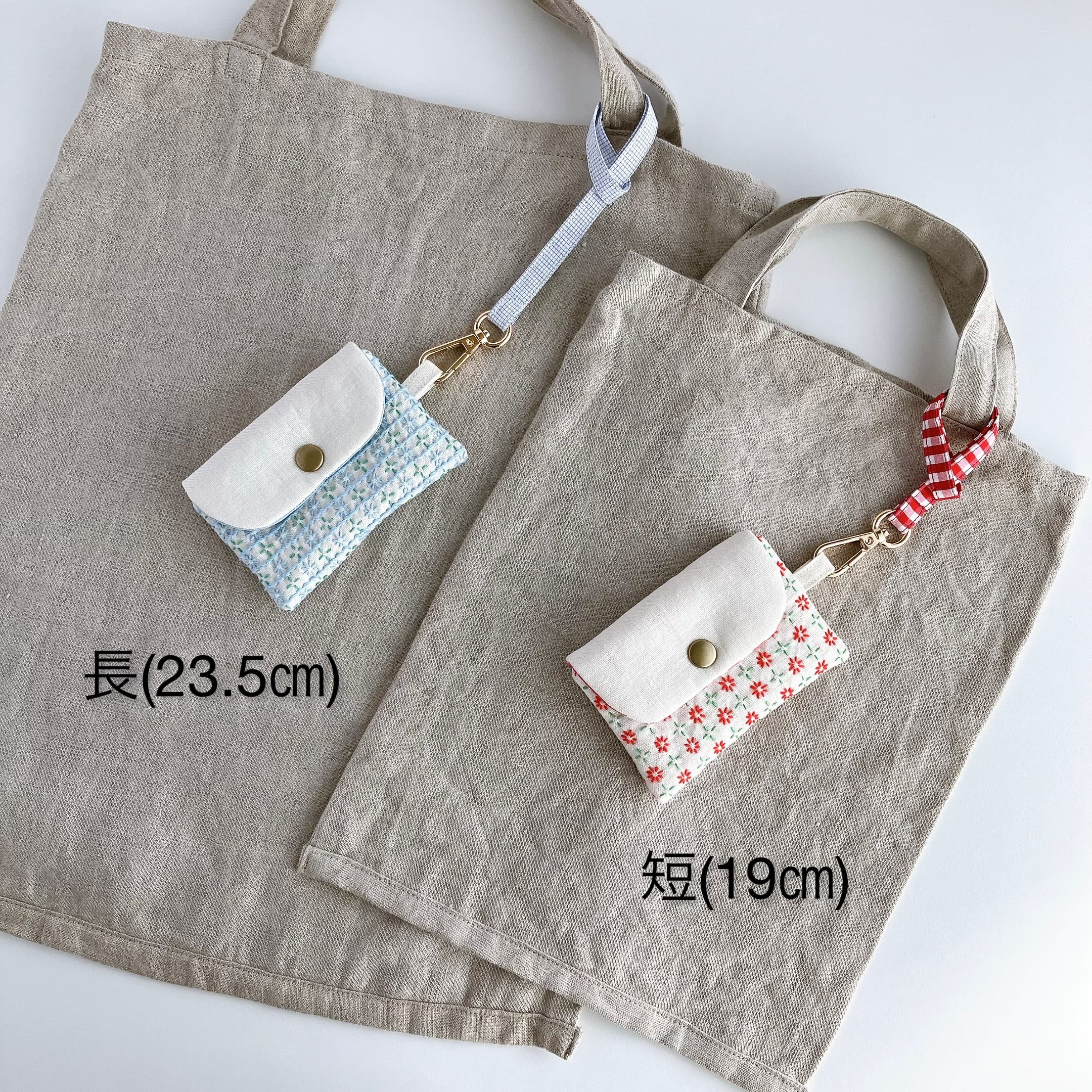 こちらのストラップは、短い方(長さ約19㎝/金具の長さを含む)のストラップです。