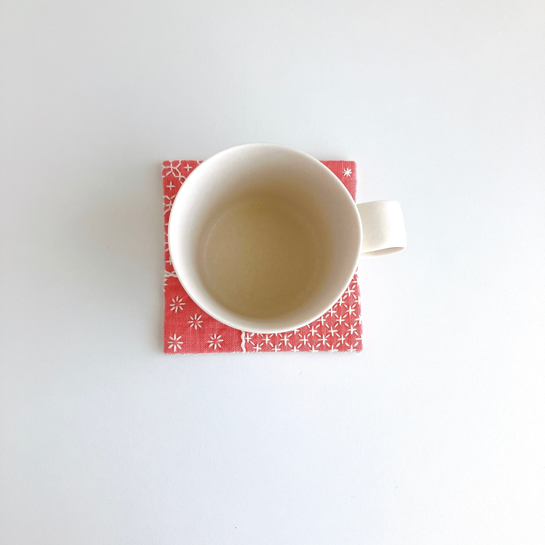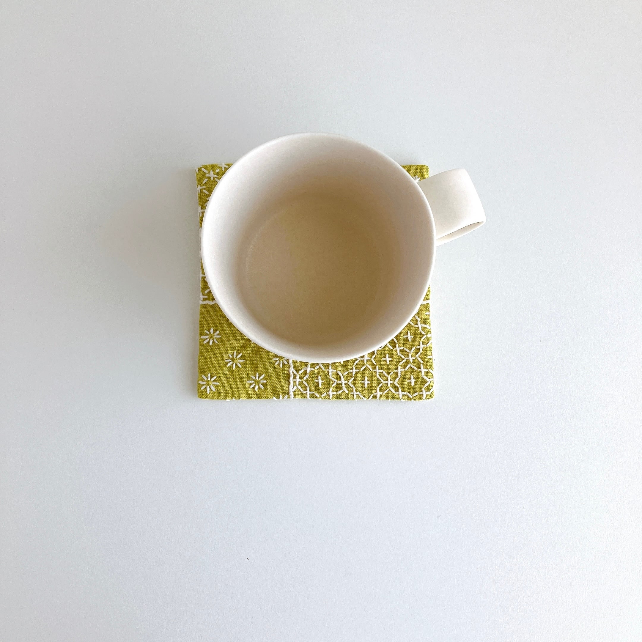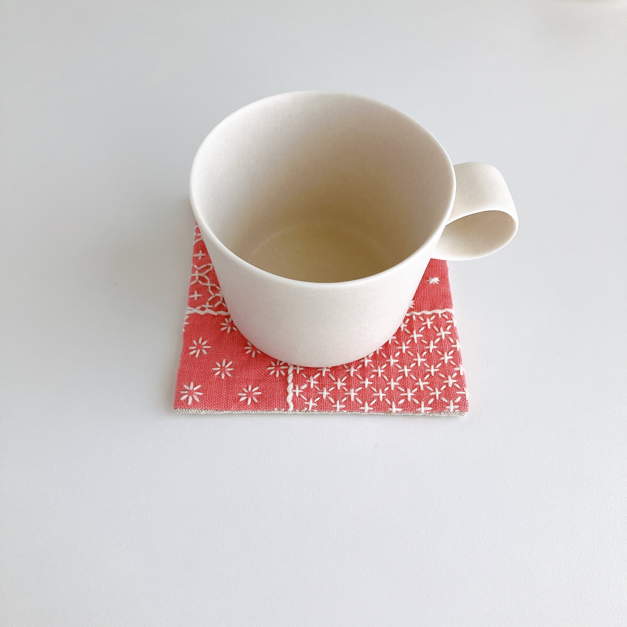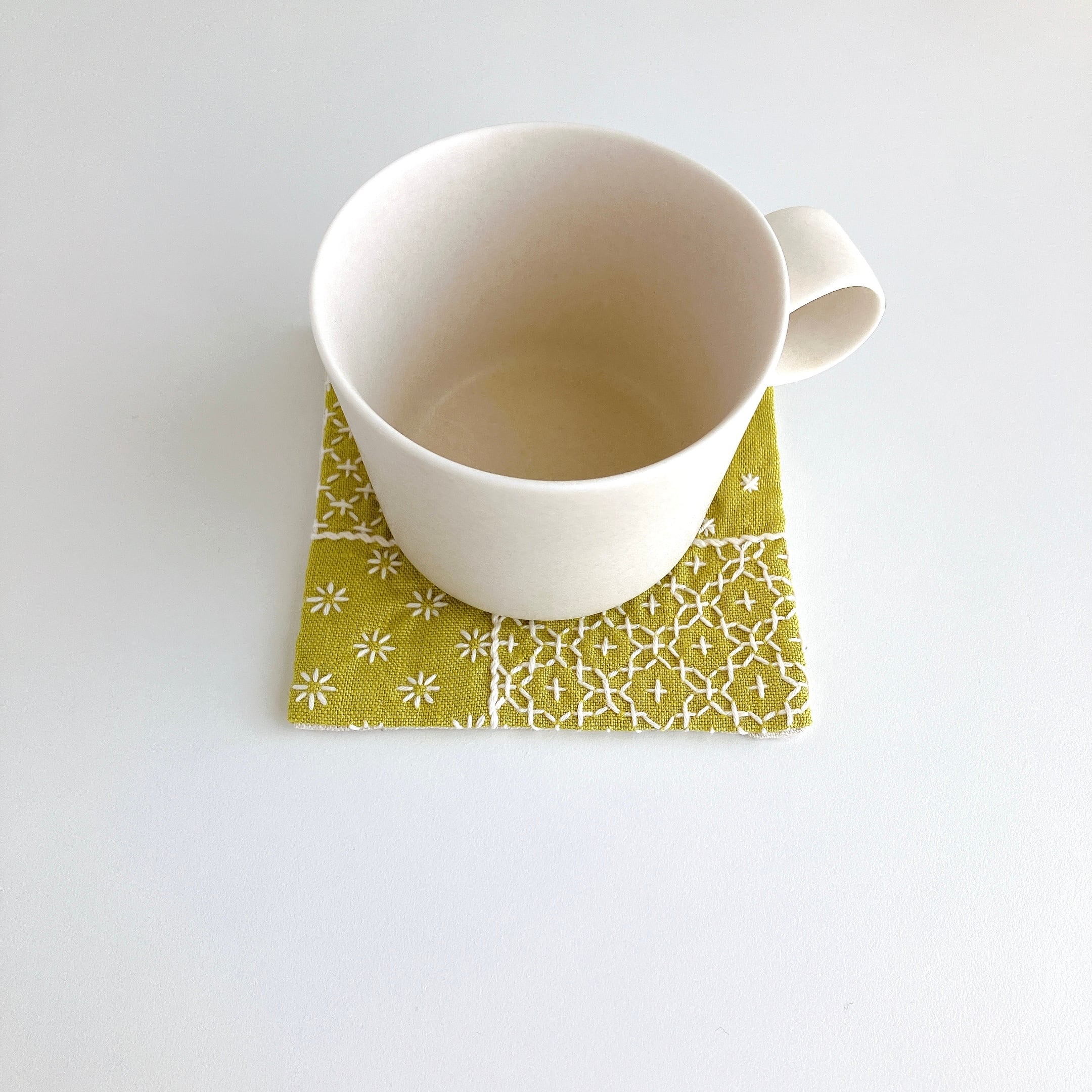 リネン生地を使った、刺し子コースターです。