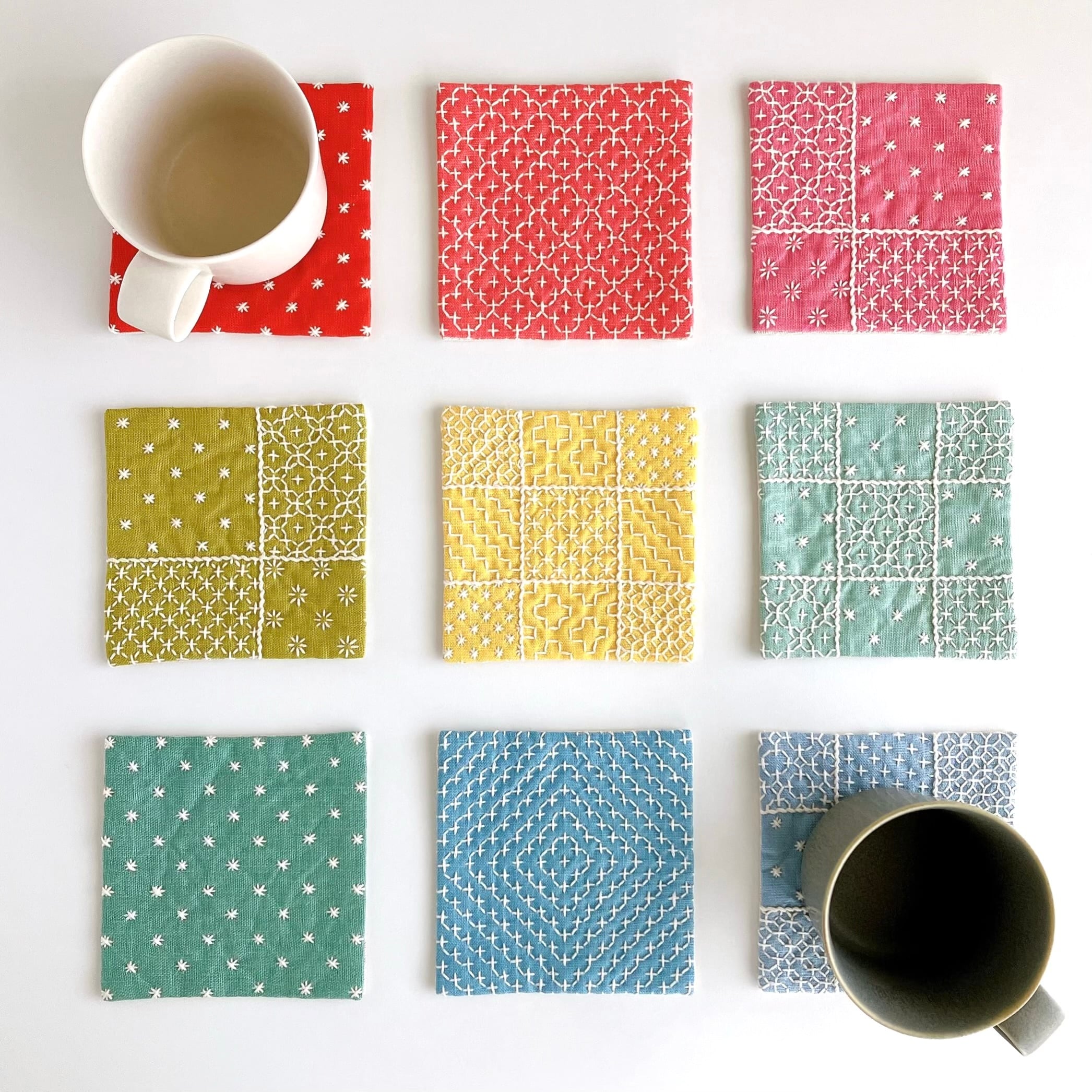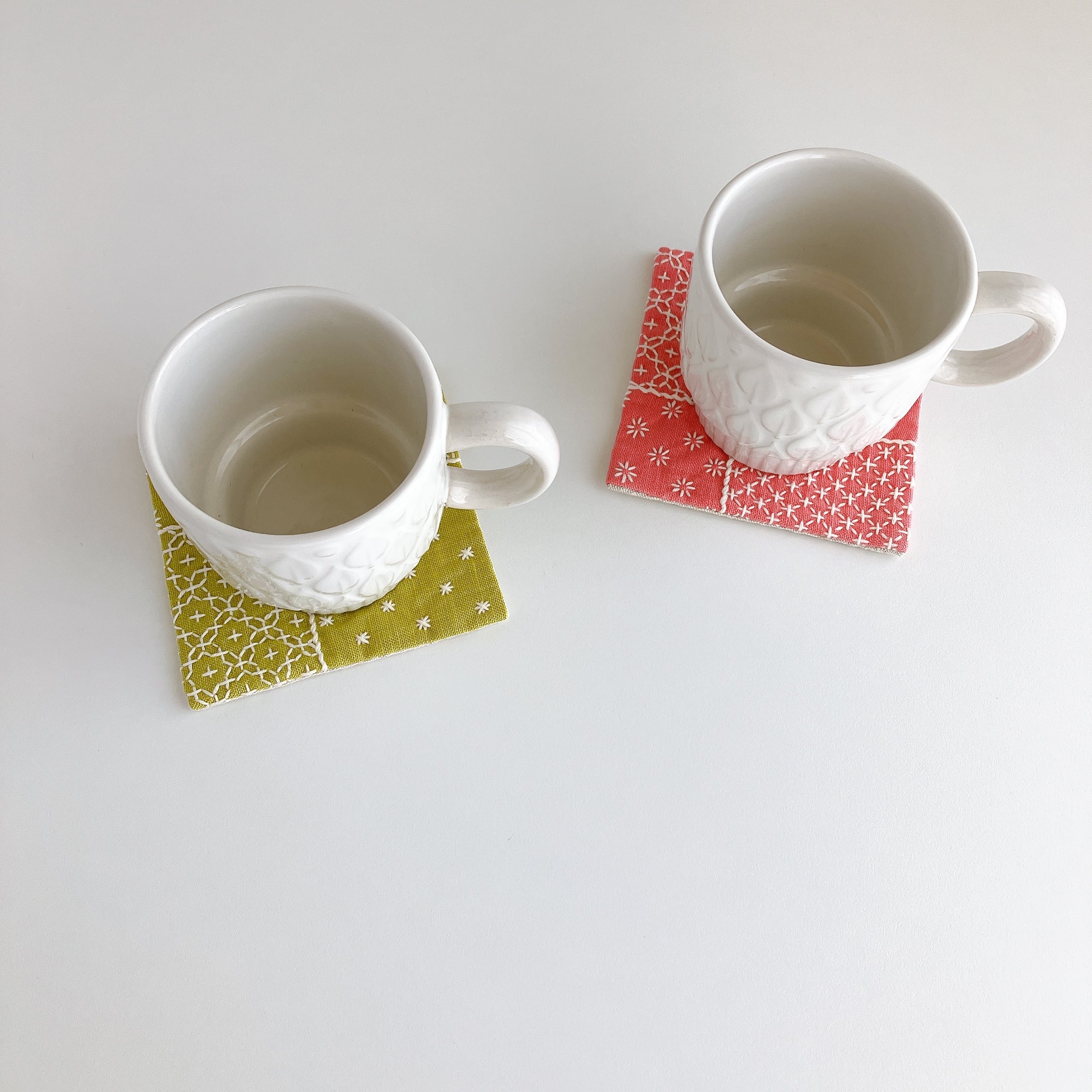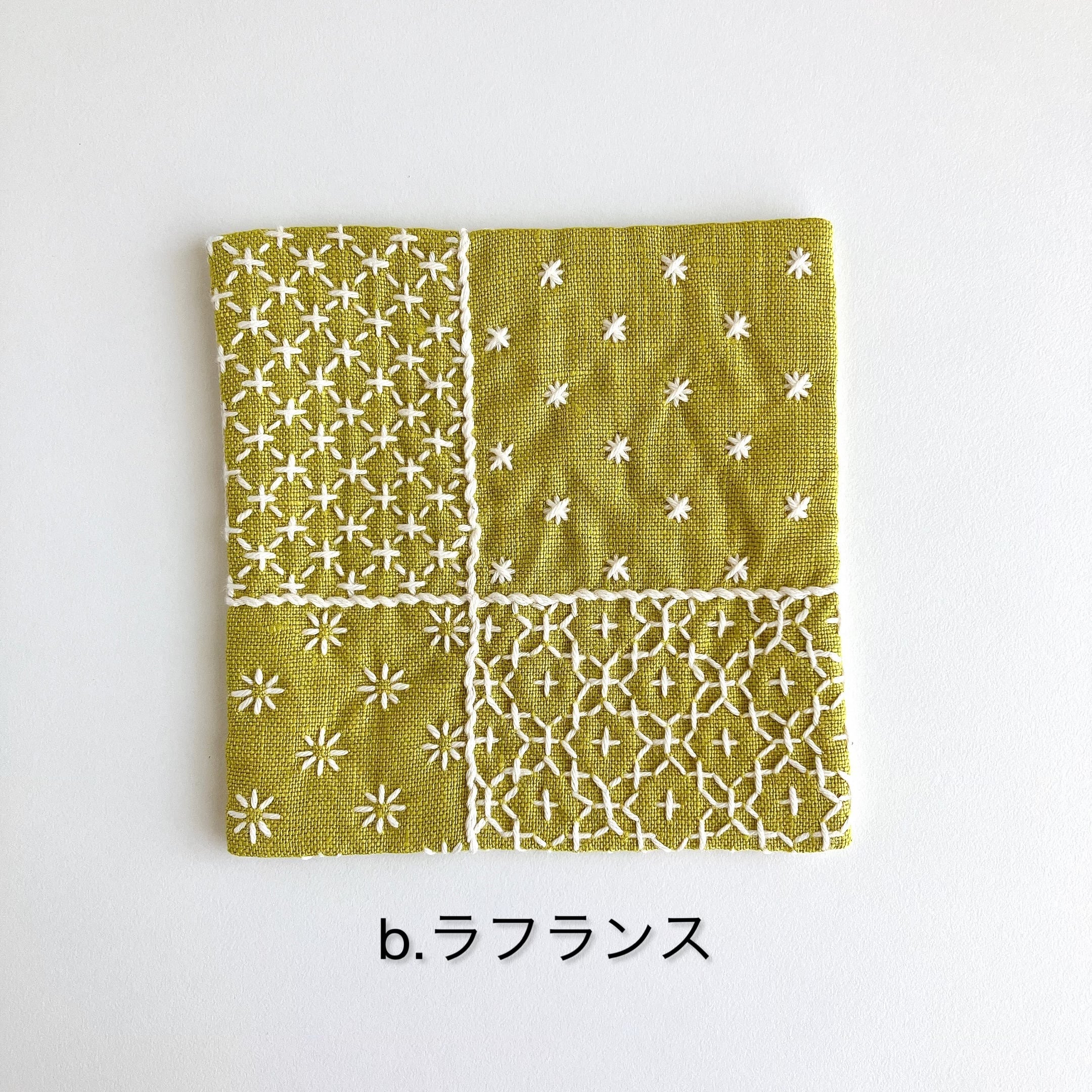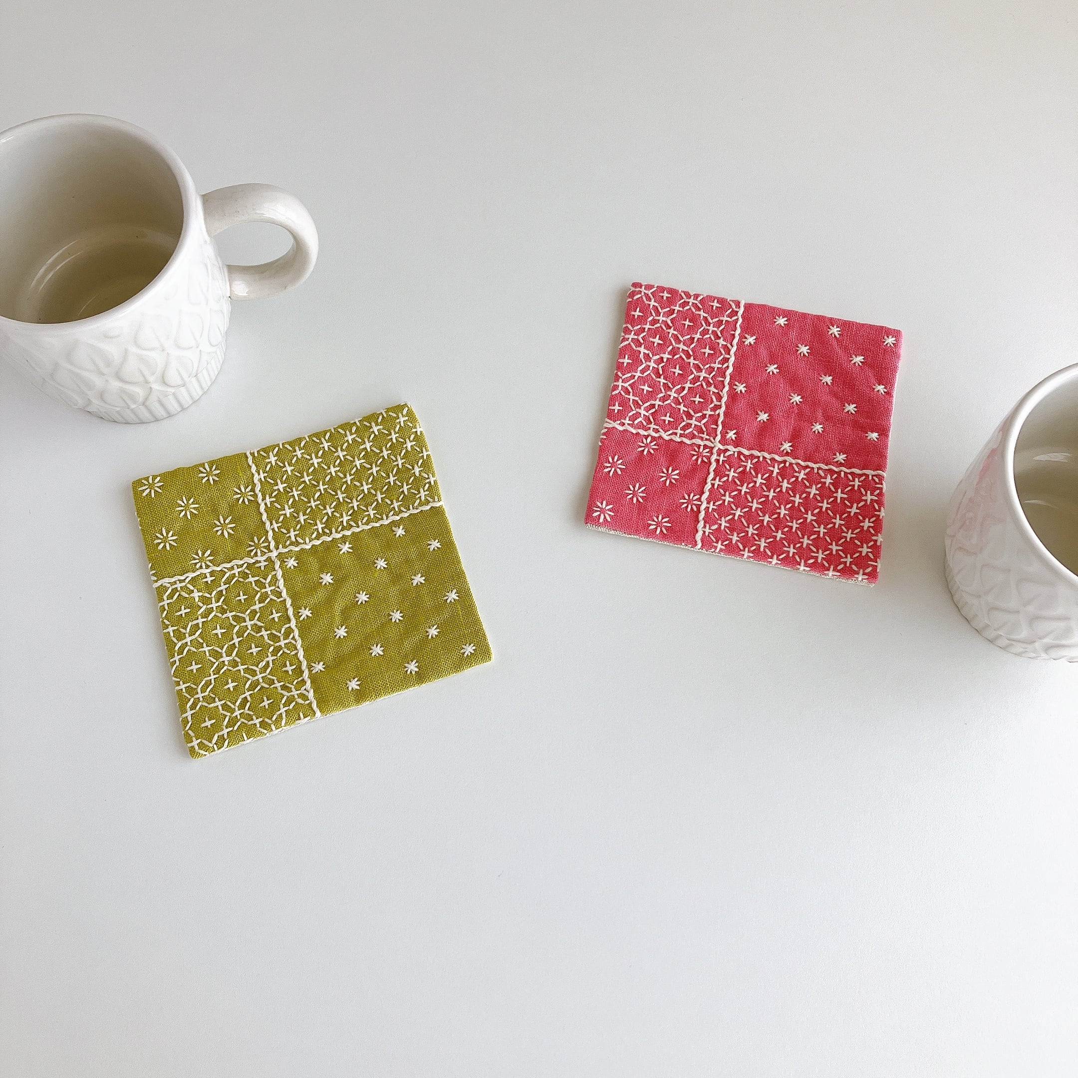 リネン生地を使った、刺し子コースターです。
